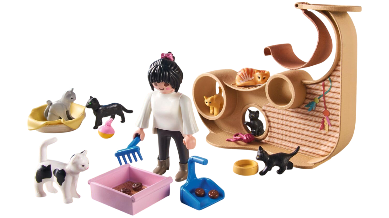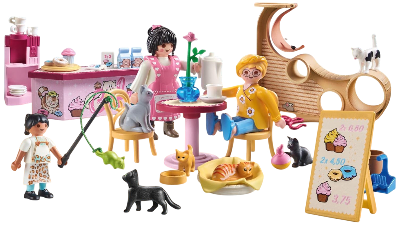 Bine ați venit în încântătoarea cafenea pentru pisici PLAYMOBIL - unde se întâlnesc cafeaua și mângâierile pisicilor.