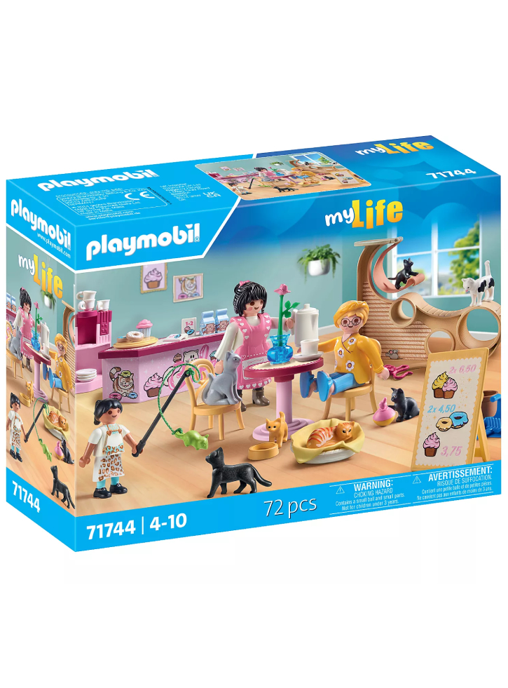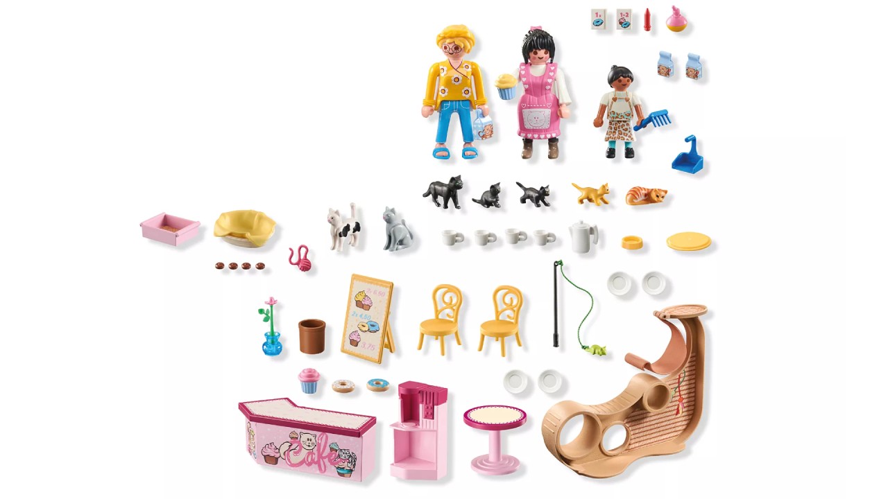 Acest set detaliat PLAYMOBIL combină cultura cafenelelor și dragostea pentru pisici și aduce un amestec special de confort și distracție cu animale direct în camera copiilor.