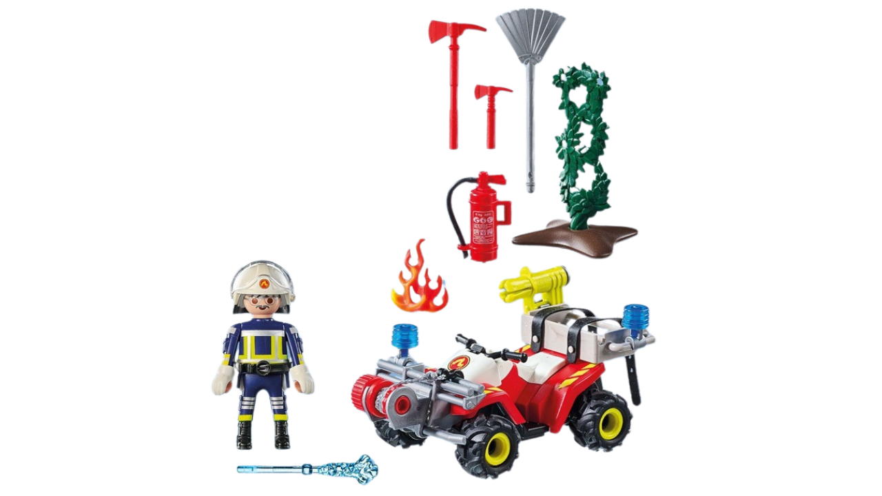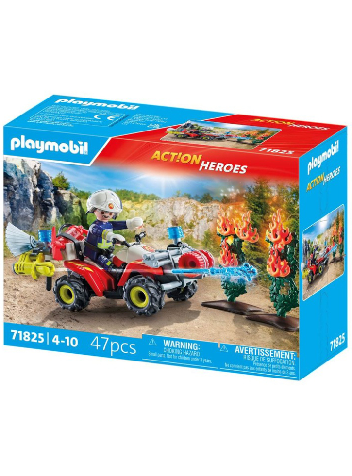 Grabeste-te in actiune cu PLAYMOBIL ATV-ul brigazii de pompieri! Echipat cu troliu si tun de apa, acest ATV este pregatit pentru misiuni indraznete.