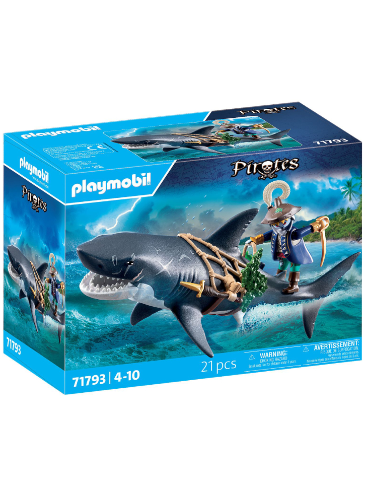 Playmobil Giant Shark with Pirate (71793) este un set care aduce împreună două personaje emblematice – un pirat curajos și un rechin gigantic cu fălci care se deschid.