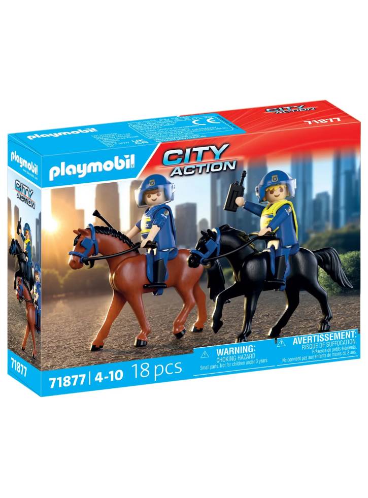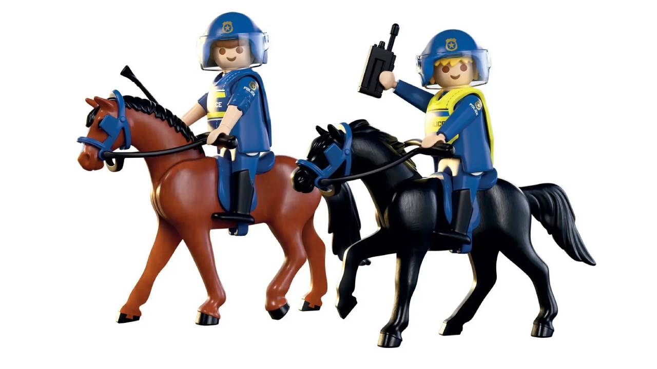 Click-Clock through the city with Playmobil Police squadron! Ringing on their trusted horses, the policeman and the policeman patrol the streets, prepared by action with radio, flashlight and removable news.