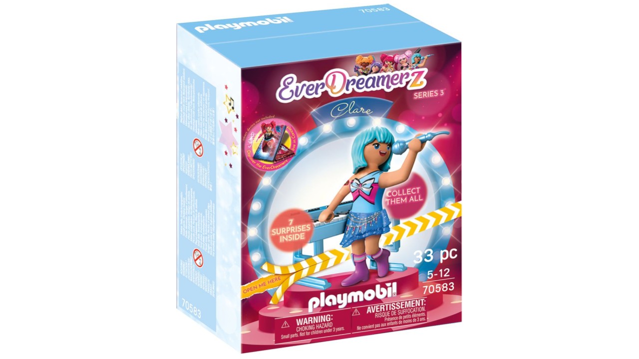 Setul de joacă conține geniul EverDreamerz Clare cu pui de alpaca și tastatură, brățară de silicon, mărgele, autocolante, carte de vizită și alte accesorii fantastice.