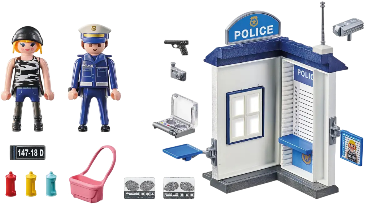 Camera de anchetă a poliției poate fi atașată la secția de poliție și este o extensie excelentă pentru lumea poliției PLAYMOBIL.