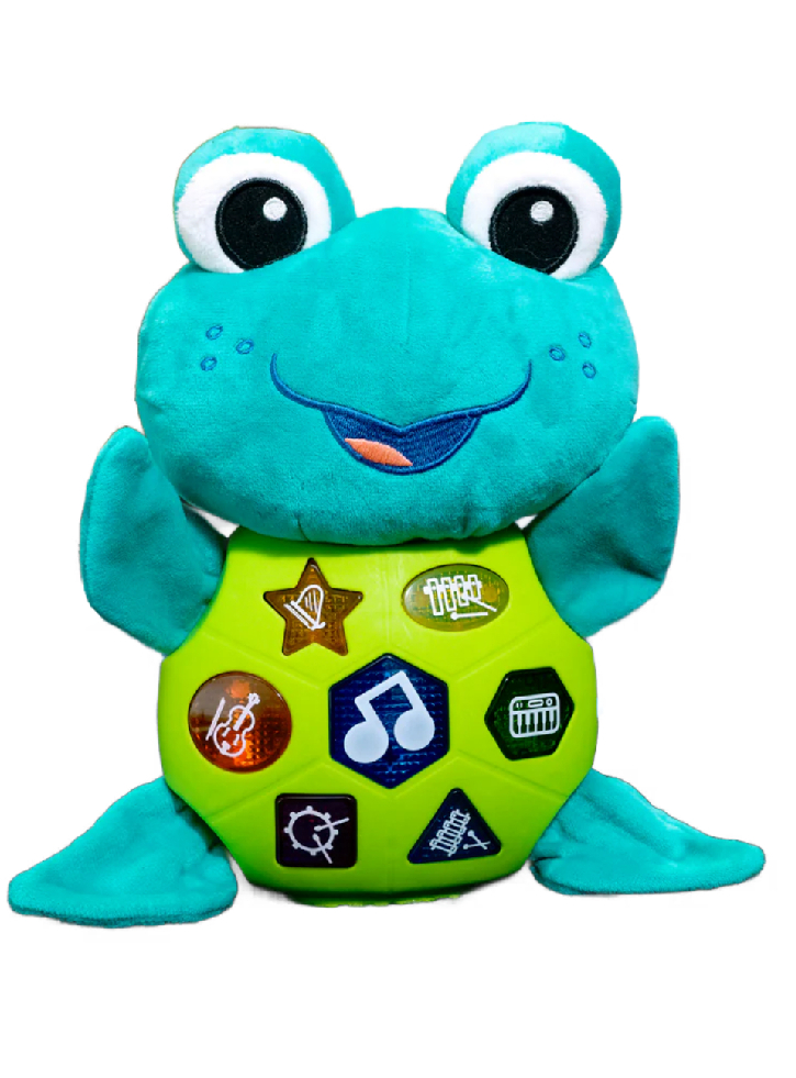 Each push of the shell stimulates baby's cause and effect skills and helps him explore the sounds of instruments: percussion, electric piano, xylophone, harp and bass.