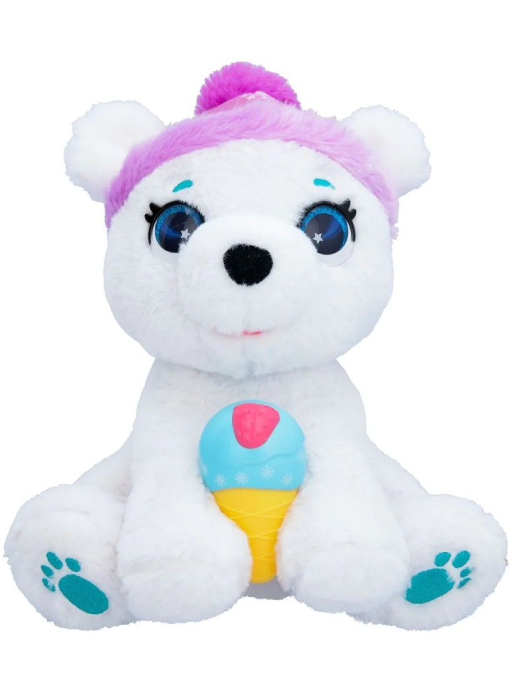 Ursulețul este confecționat din pluș de înaltă calitate, are elemente cu sclipici și adoră înghețata, dar uneori îi este frig și atunci copilul dvs. trebuie să aibă grijă de el.