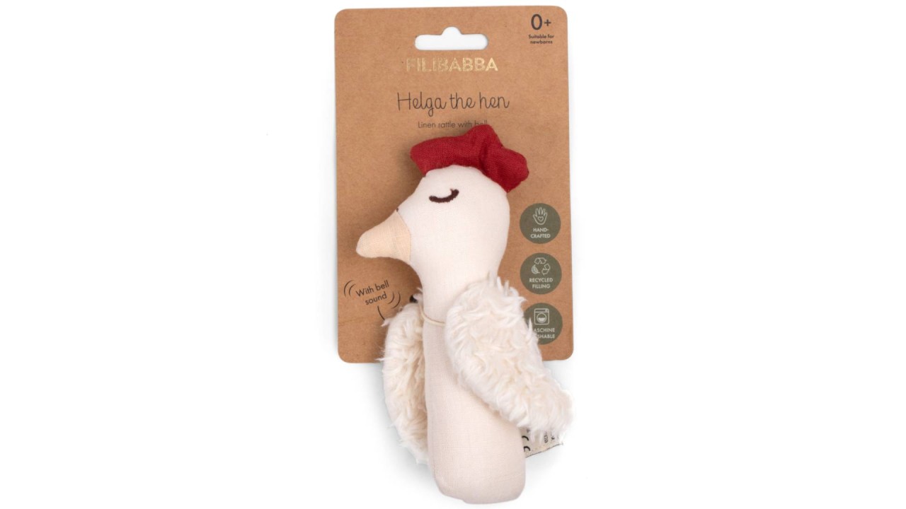 Helga the hen's gentle facial expression will quickly capture your baby's interest and has lots of fine details for those little hands to explore.