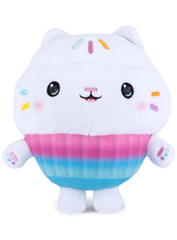 O jucărie de pluș unică de 25 cm, reprezentând personajul îndrăgit Cakey Cat din serialul de succes Gabbys Dollhouse.