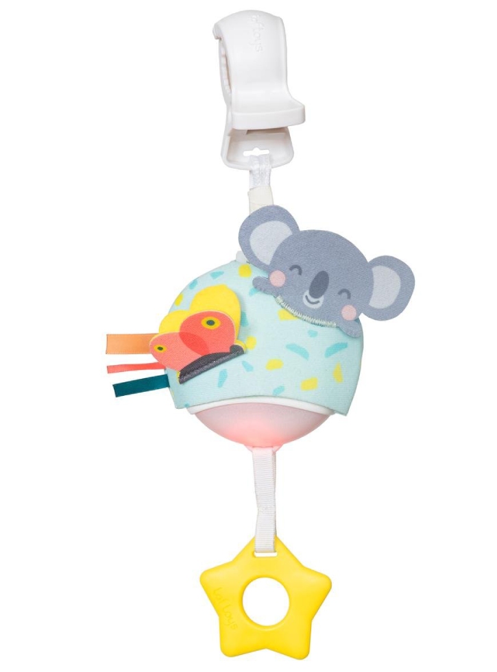 Jucăria este ușoară și ușor de pliat și include chiar și o clemă de plastic, astfel încât să poată fi atașată la cărucioare, scaune de mașină și pătuțuri