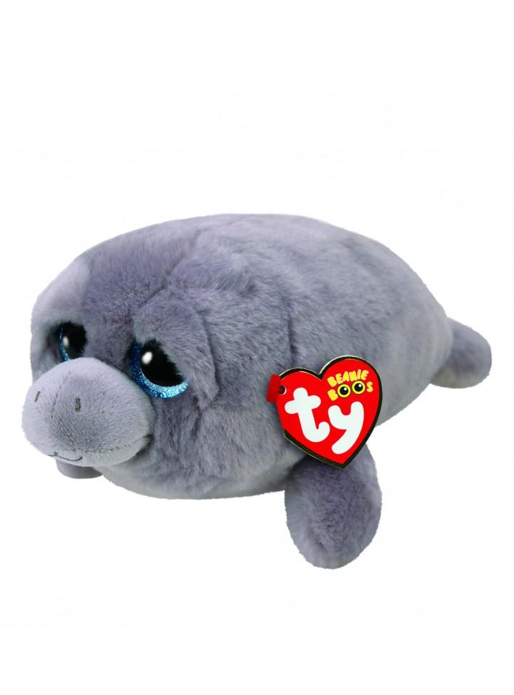Milo este un lamantin de culoare gri, cu nasul rotund.