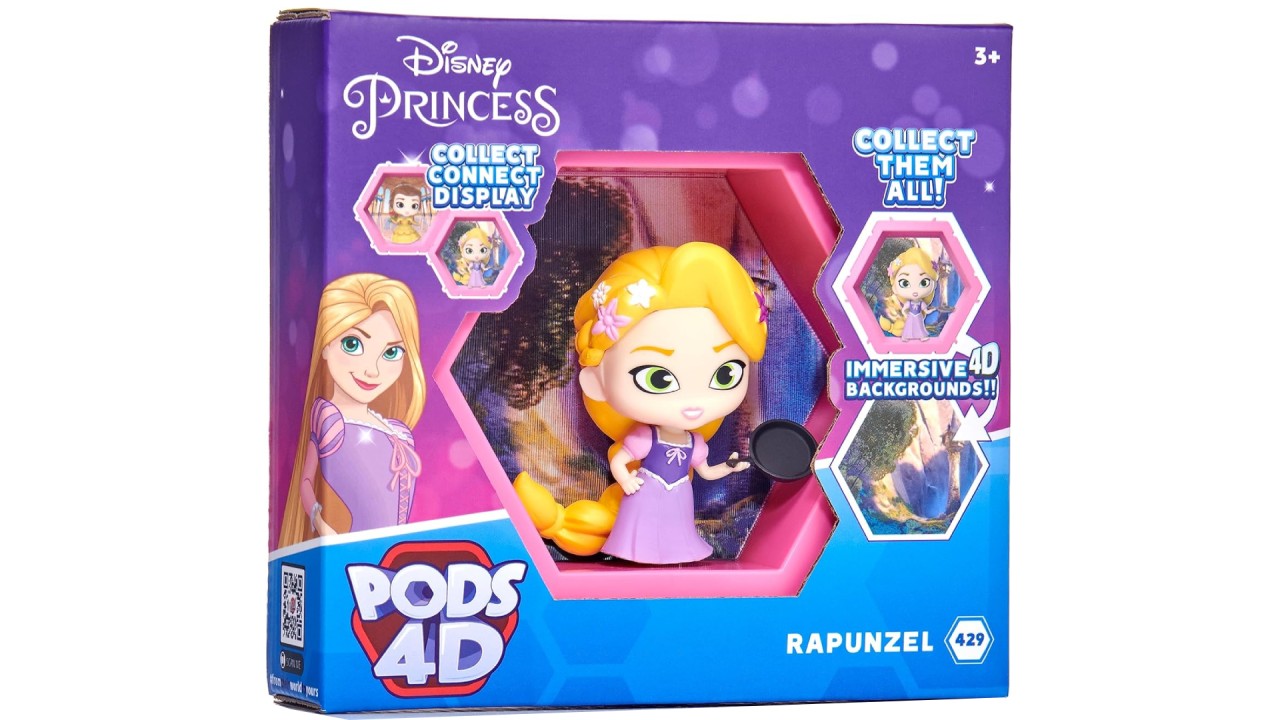 Rapunzel face parte din colecția Disney PODS 4D care îi include pe Stitch, Ursula, Maleficent și multe altele.