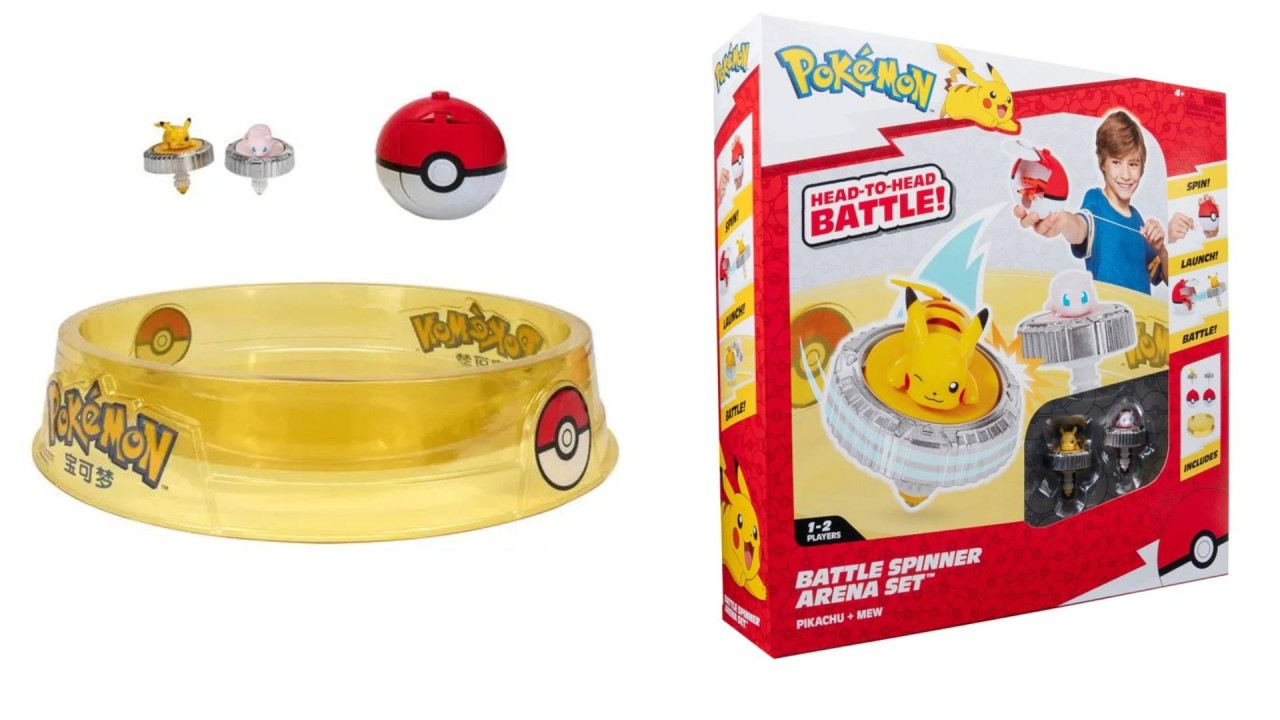 Setul include două Batlle Spinners cu Pikachu și Mew și două lansatoare Poké Ball Spinner.