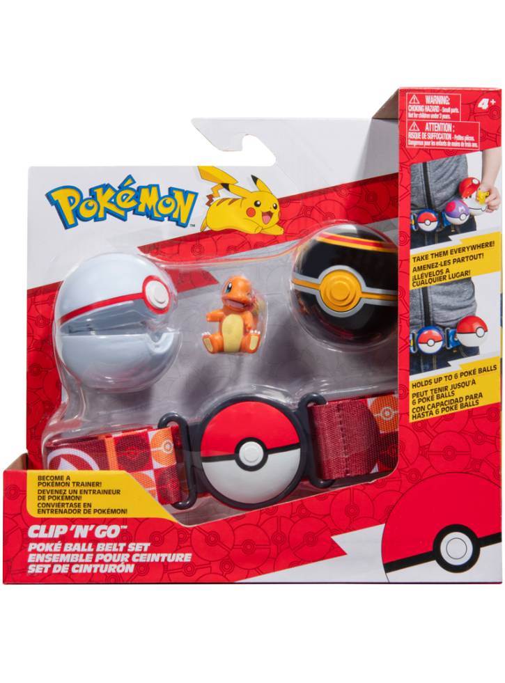 Deveniți un antrenor Pokémon cu setul de centură Pokémon Clip 'N' Go. Acest set unic conține o centură de purtat și două mingi Pokémon pentru a începe călătoria ta în lumea Pokémon. Fiecare Poké Ball vine cu o figurină de luptă Charmander care se potrivește perfect în interiorul acesteia.