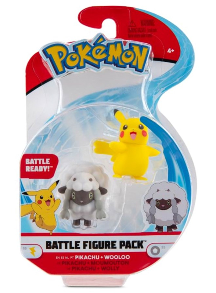 Intră în luptă cu aceste 2 figurine de luptă pokemon! Pikachu și Wooloo sunt gata de luptă.
