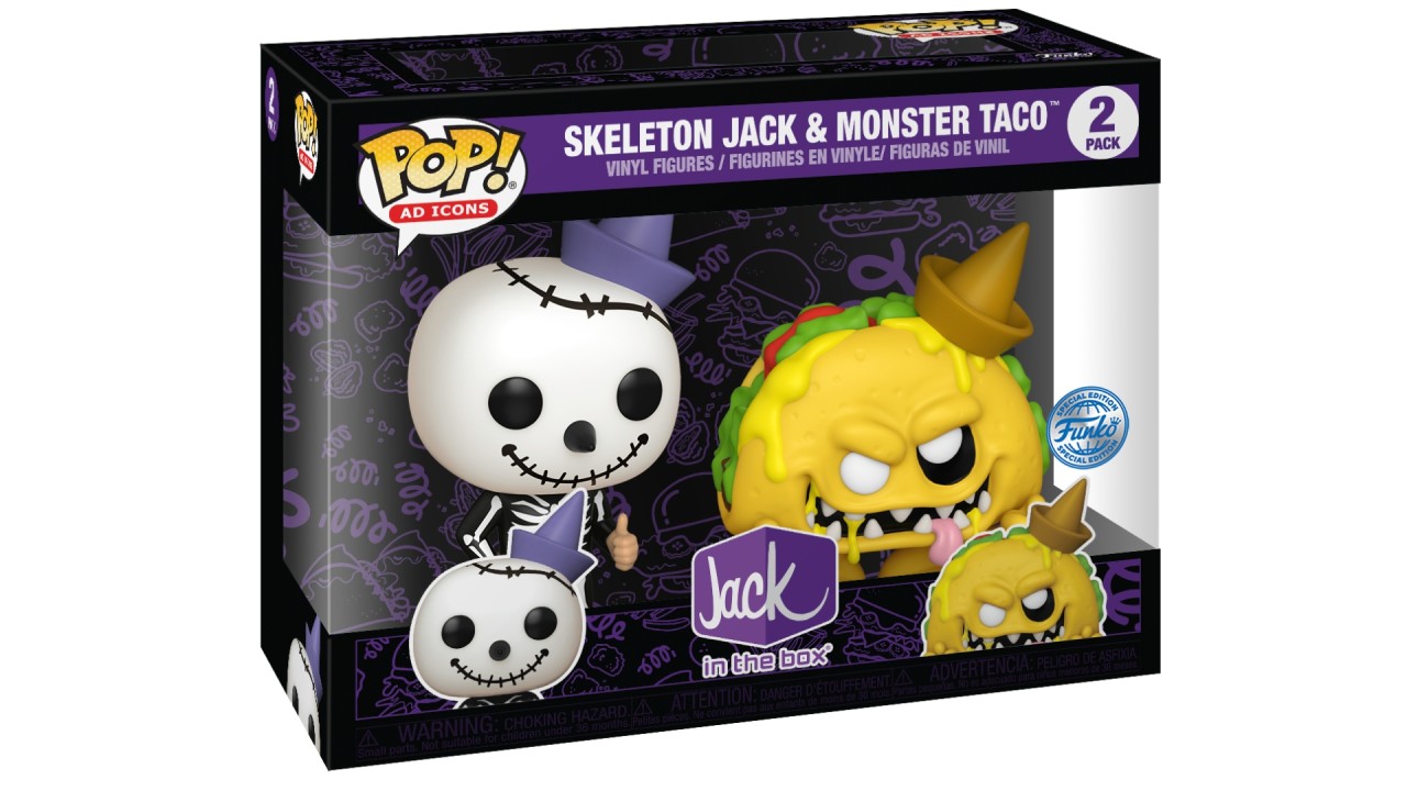 In pachet se afla 2 figurine infricosatoare: Pop! Skeleton Jack și Pop! Monster Taco.