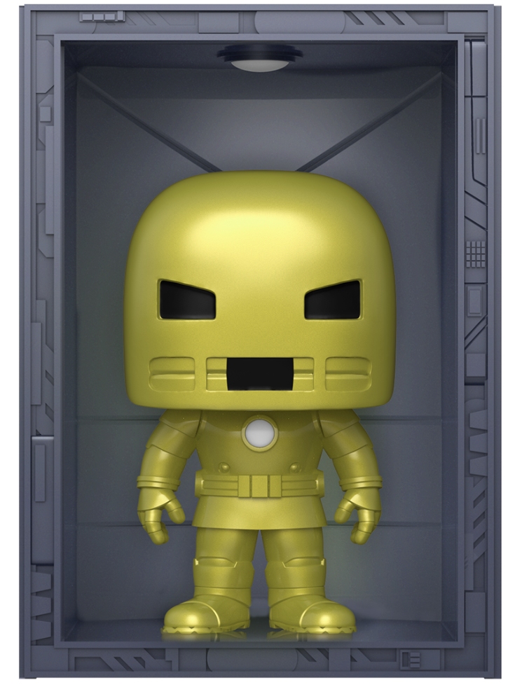 Extinde-ți colecția Marvel cu figurina Pop! Iron Man Hall of Armor, Model 1 Golden Armor.
