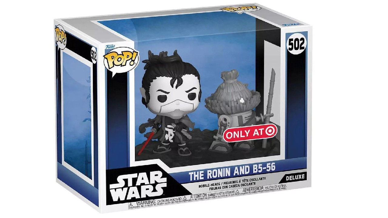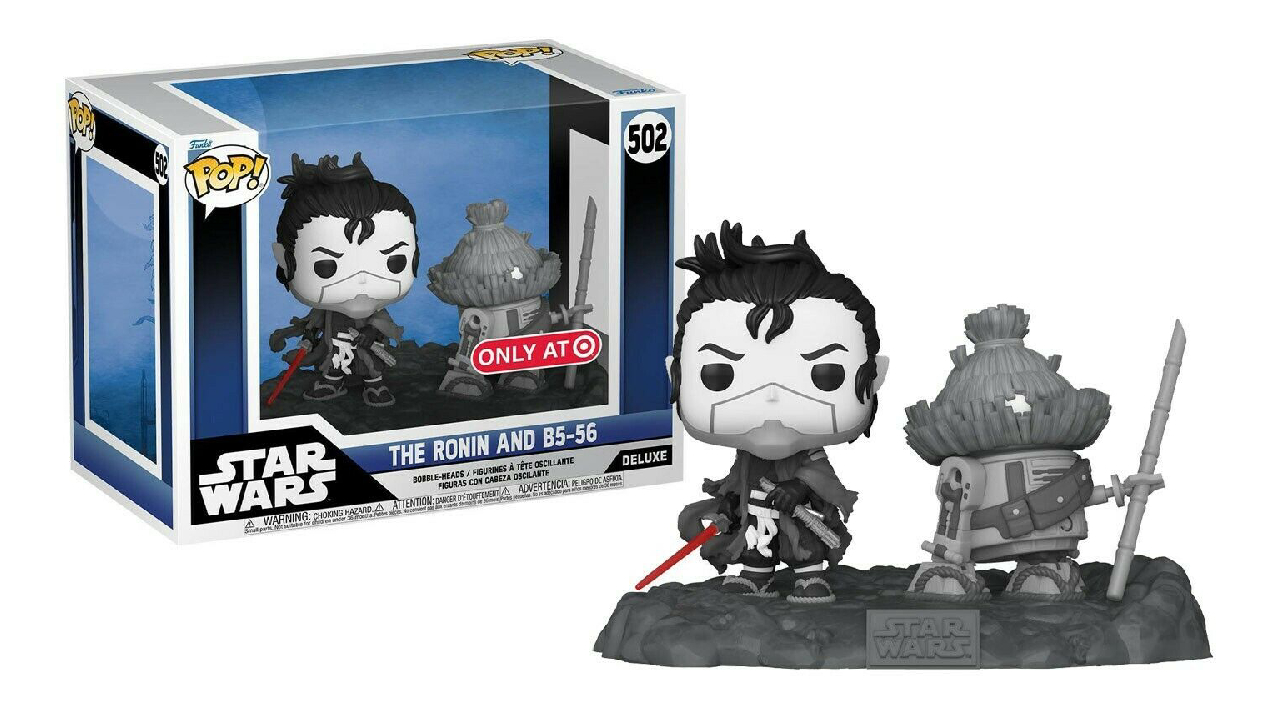 This amazing Pop! Deluxe Pop! It features Ronin and his trusty droid companion B5-56, both appearing in the first episode "Duel". The Ronin's lightsaber also has a Glow in the Dark finish.