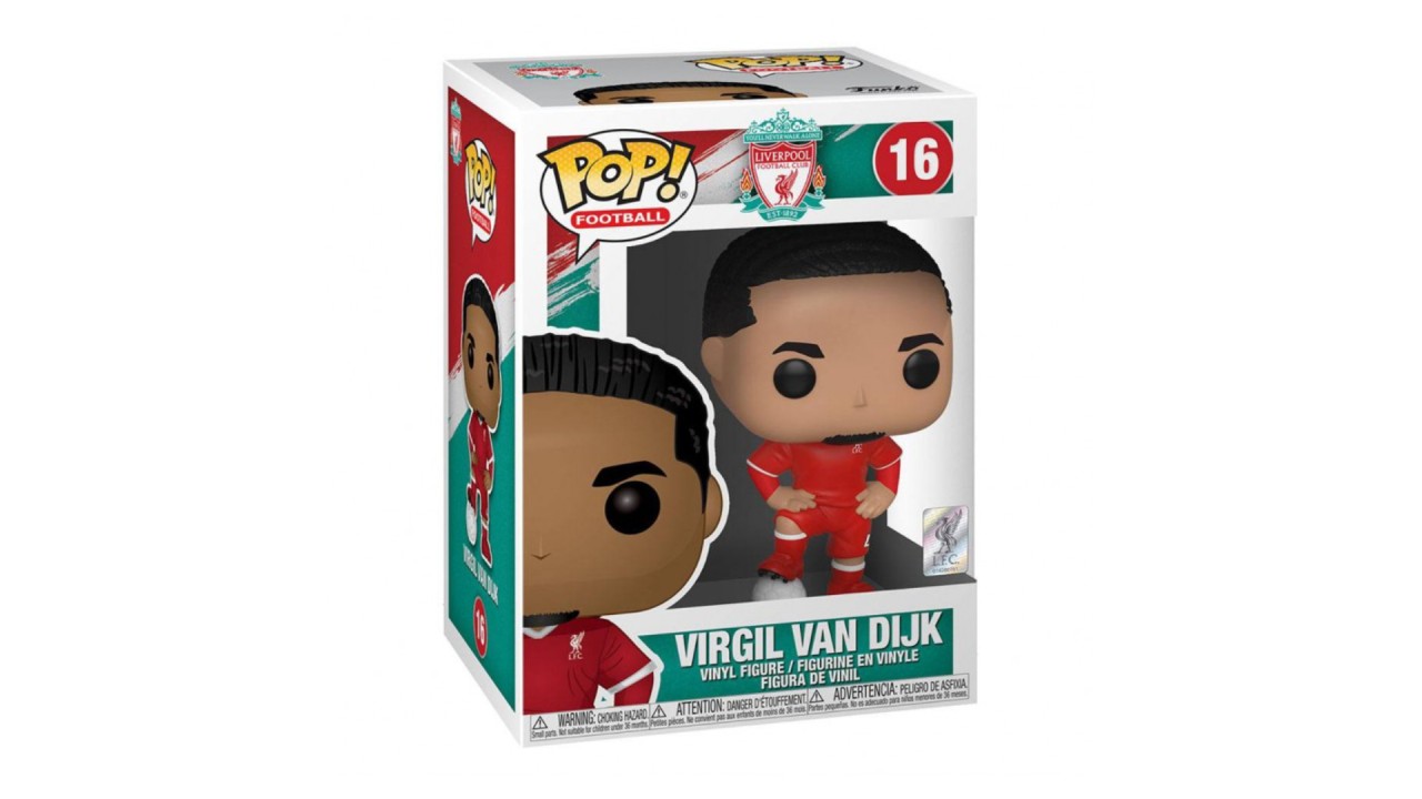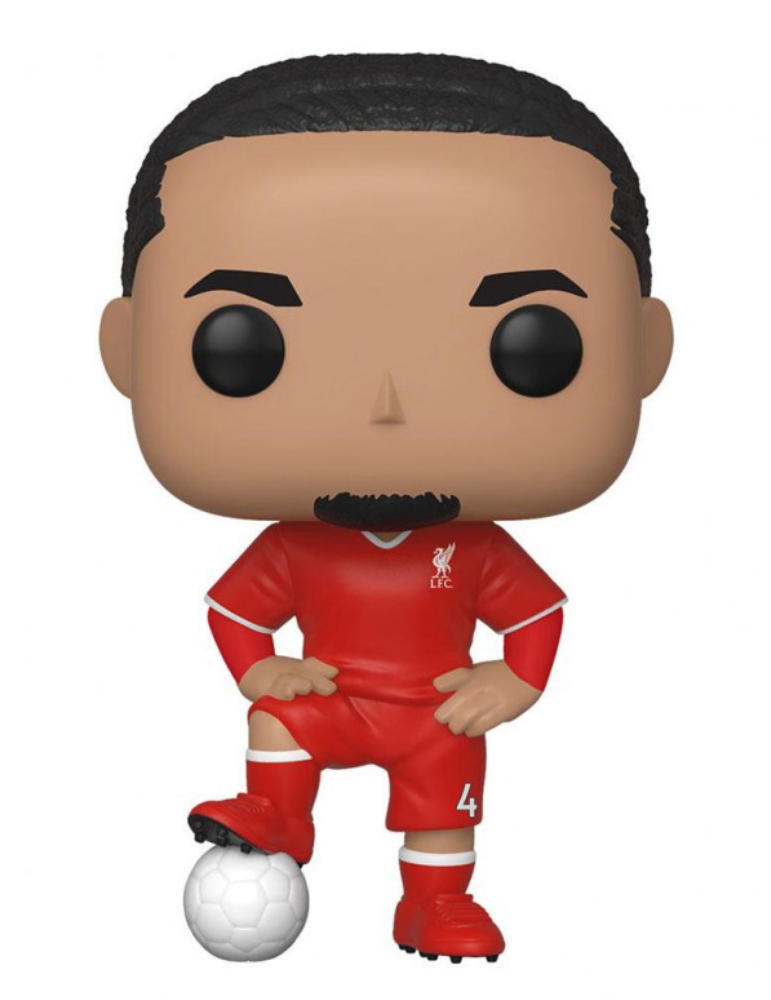 This Pop! features Virgil Van Dijk of Liverpool Football Club wearing the club's uniform and comes with a soccer ball.