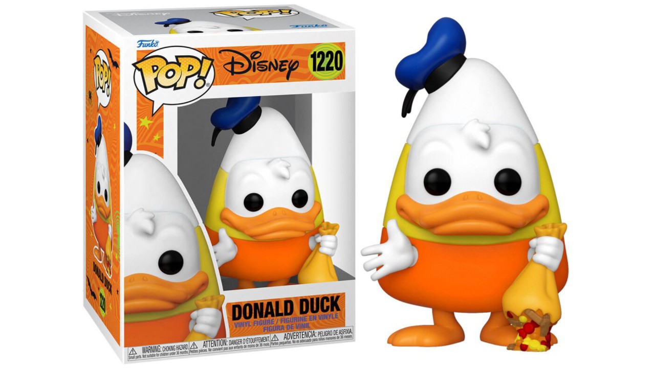 This Pop! features Donald Duck wearing an adorable Candy Corn costume and holding a bag of candy.