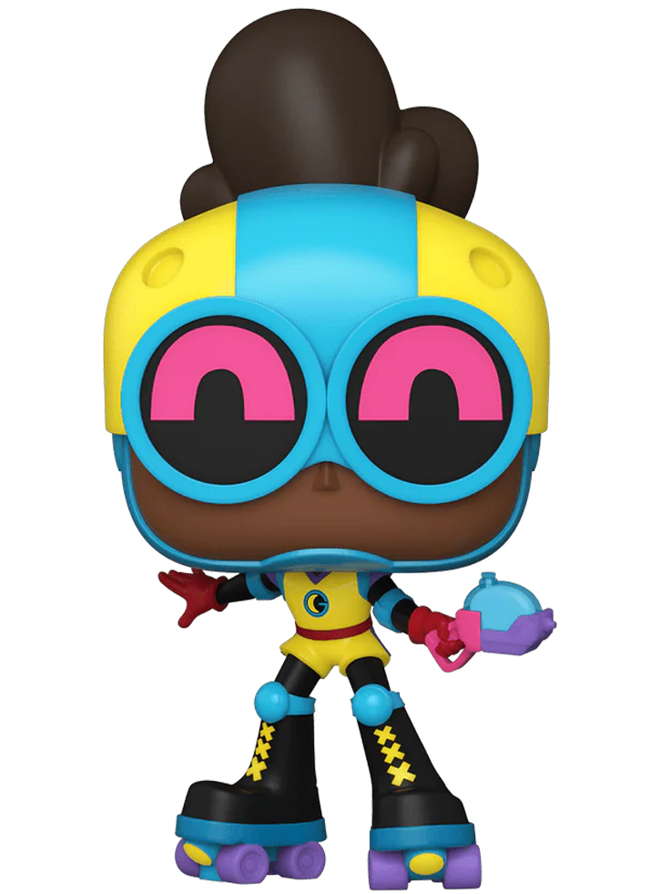 Intrând în acțiune cu rolele, Moon Girl își îmbracă costumul de supereroină vibrant și colorat, cu un gadget în mână.