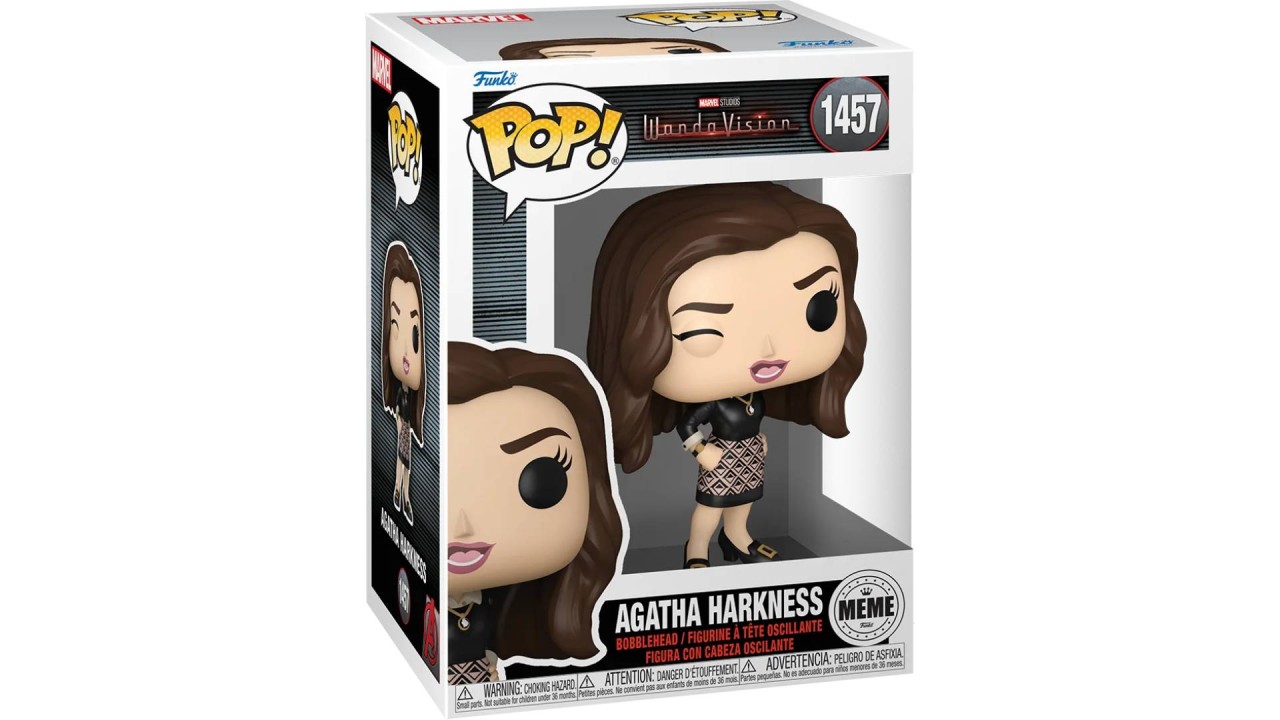 Funko Pop! Marvel: WandaVision - Agatha Harkness (Meme) #1457 este o figurină de colecție care o reprezintă pe Agatha Harkness, un personaj din seria WandaVision de la Disney+.