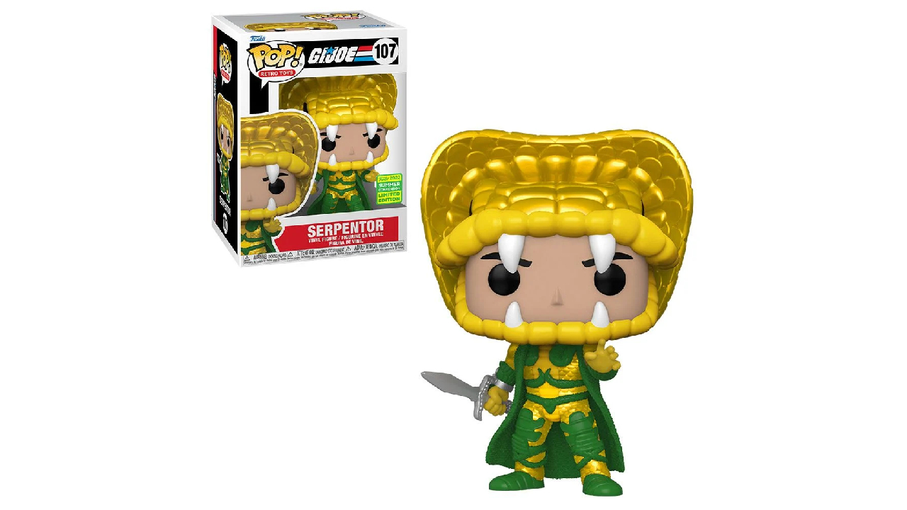 This Pop! features C.O.B.R.A.'s evil emperor, Serpentor, armed with his sword and wearing his iconic costume.