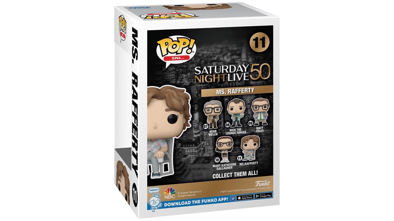 Capturând spiritul unic al „Saturday Night Live” Sărbătorește 50 de ani de umor fără pereche cu acest Funko Pop de colecție inspirat de personajul Ms. Rafferty.