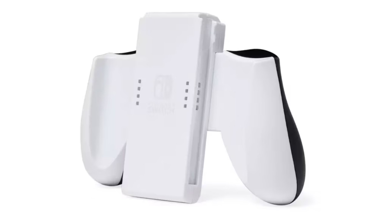 Additionally, the handle is designed to sit upright, complementing the look of the Nintendo Switch Dock.