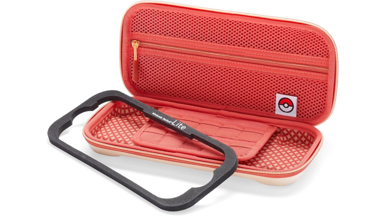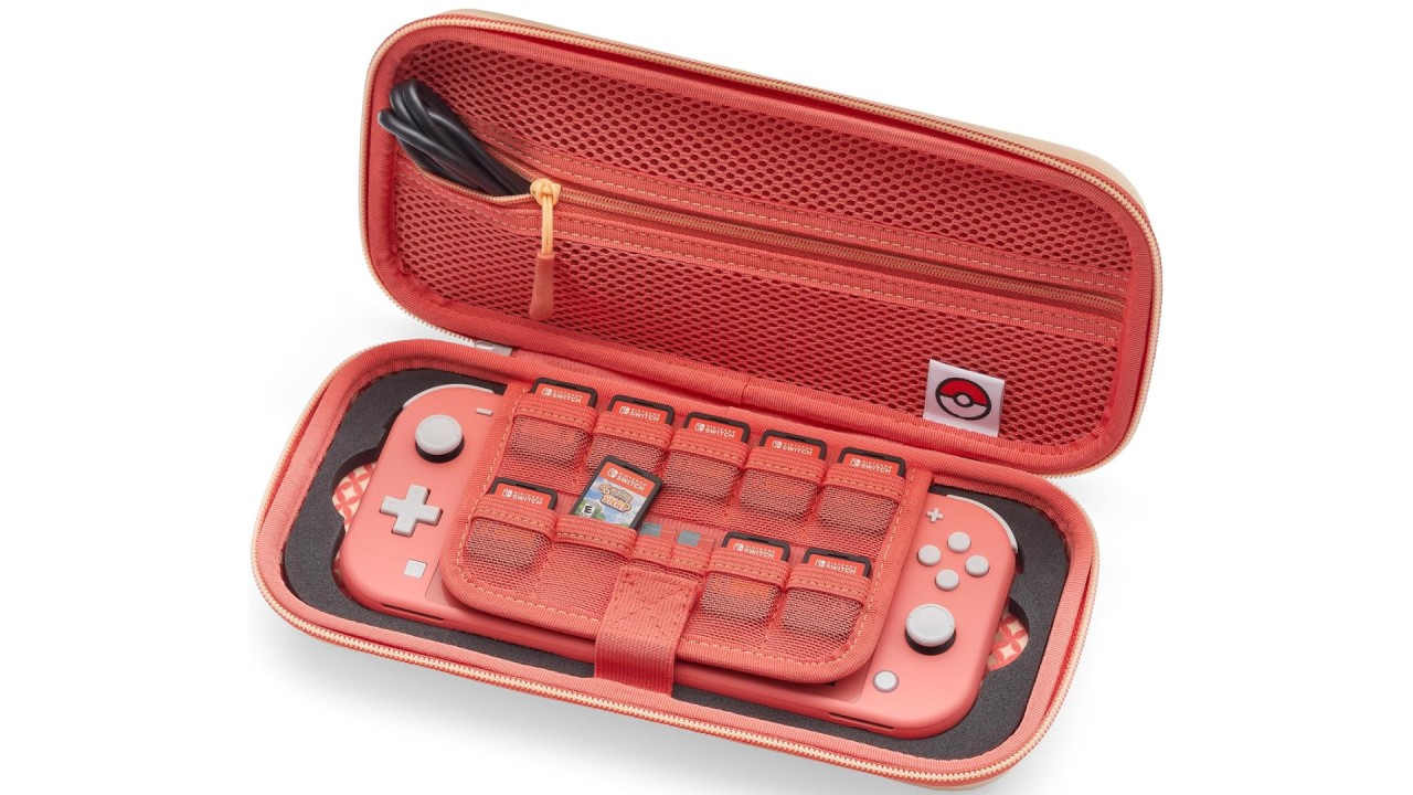 The soft interior features a dedicated section for game cartridges, keeping them organized and easily accessible.