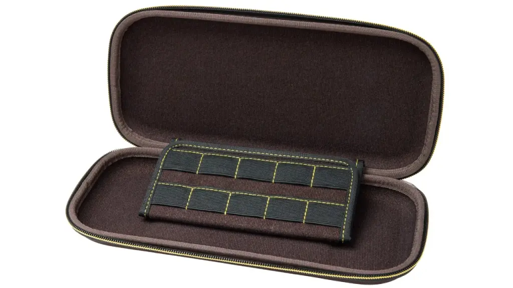 În interior, vei găsi o căptușeală din material textil moale și un suport de joc încorporat, cu spațiu de stocare pentru până la zece cărți de joc.