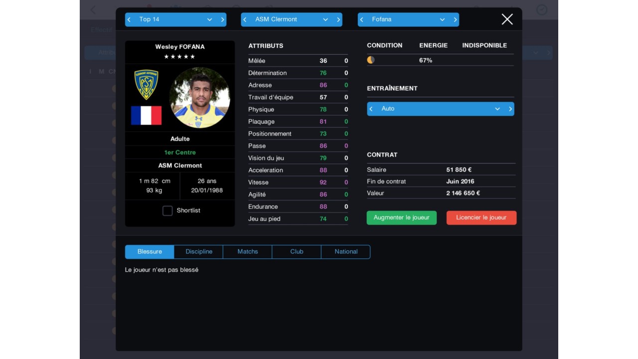 Pro Rugby Manager 2015 covers all aspects of the challenges of a real rugby union manager: guarantee sporting success on the field and financial success off it and be the next Champion!