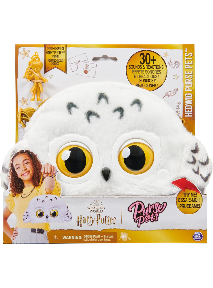 Când pleci în aventuri fermecătoare, animalul tău de companie Hedwig Purse Pet clipește și scoate sunete în timp ce interacționează cu tine.