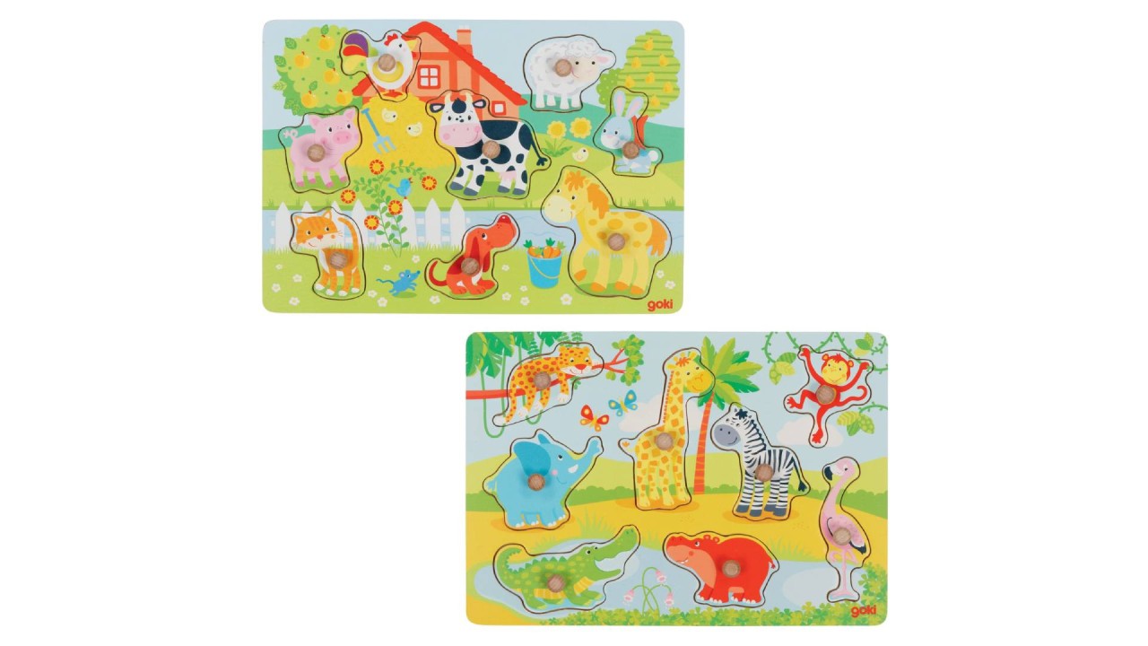 Wooden toys also help with learning about animals and recognizing shapes.