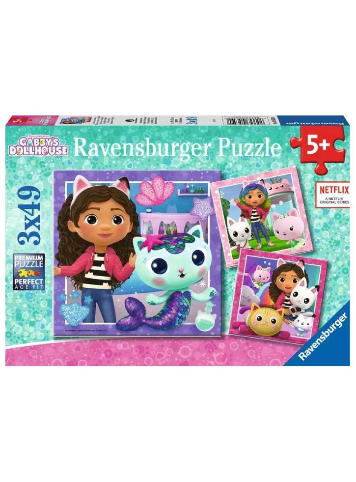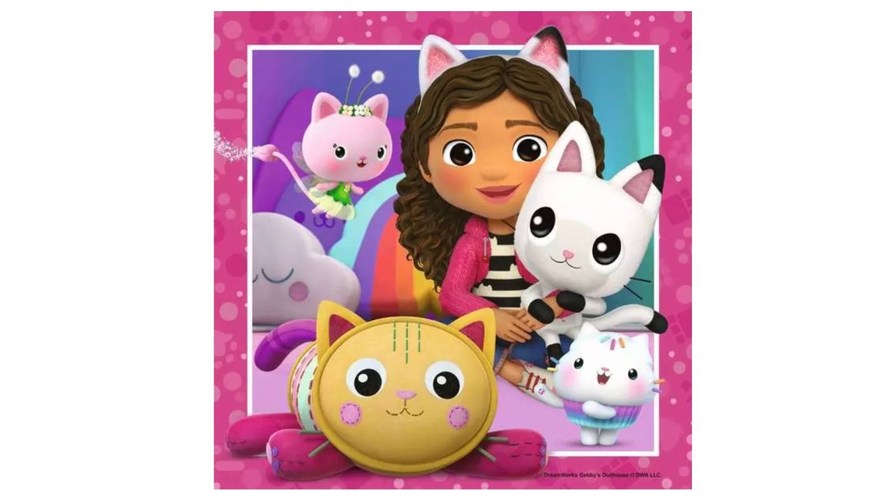Ia-ți urechile magice de pisică și pregătește-te pentru aventuri amuzante cu personajele tale preferate de pisică în acest adorabil trio de puzzle jigsaw "Casa de păpuși a lui Gabby"!