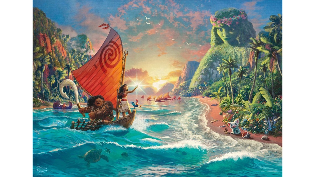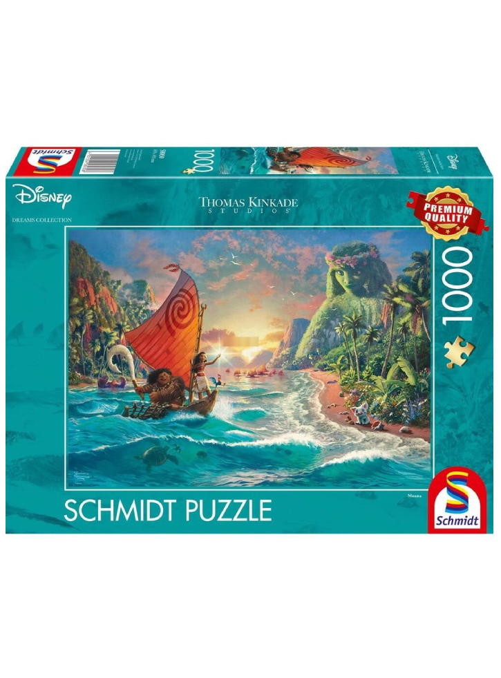 Puzzle-ul Schmidt Thomas Kinkade Disney Moana aduce la viață spiritul vibrant și aventuros al personajului Moana de la Disney prin intermediul viziunii artistice a lui Thomas Kinkade. Această colaborare surprinde o scenă senină, dar plină de viață, care combină imaginile iconice ale filmului cu stilul inconfundabil de pictură inspirat de lumină al lui Kinkade. Acest puzzle oferă o experiență unică și captivantă de construire pentru fanii Disney, Moana și pasionații de artă Thomas Kinkade. Puzzle-ul finalizat promite să fie o piesă uimitoare din punct de vedere vizual, care încapsulează esența aventurii și a explorării.