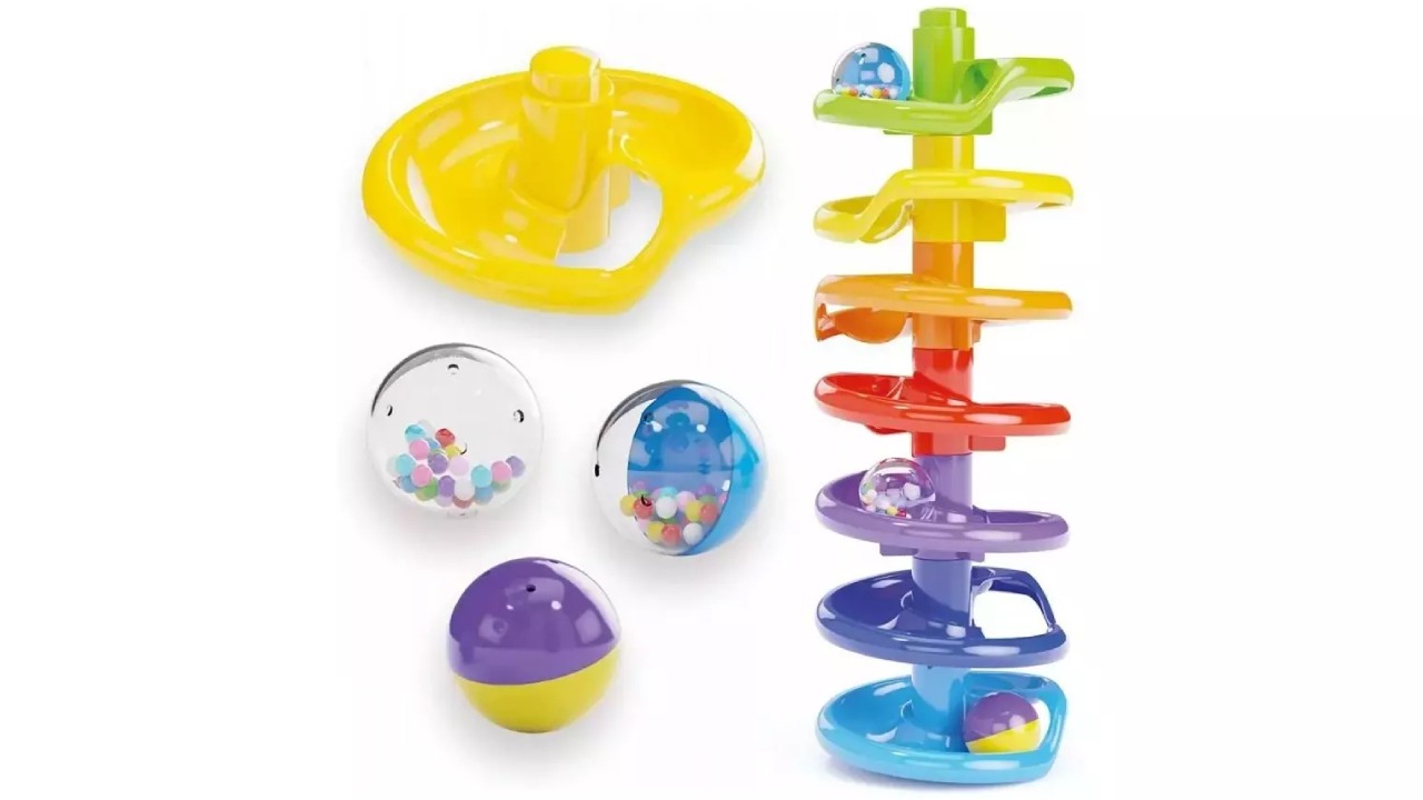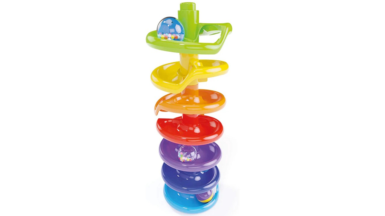 O pistă cu bile pentru cei mai mici, potrivită pentru copiii de la un an. Fiecare nivel este pictat într-o culoare diferită, permițând copiilor să exerseze recunoașterea culorilor.