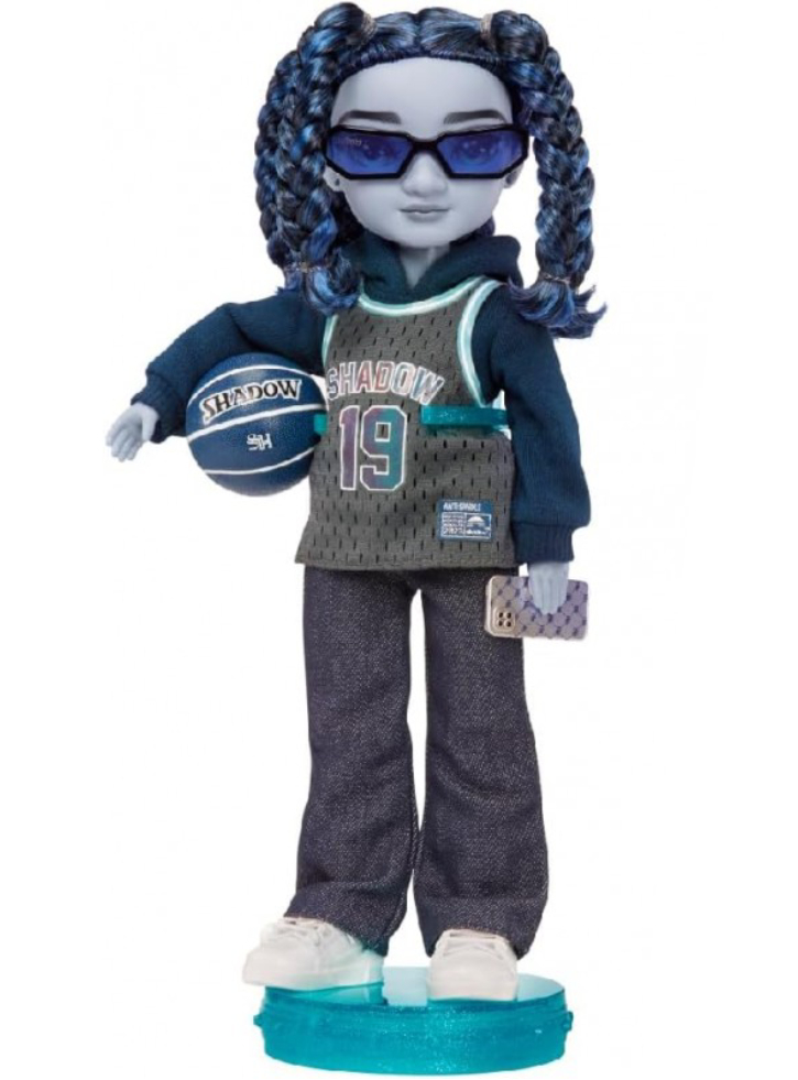 Păpușa este îmbrăcată într-o ținută elegantă și de modă, potrivită unui student de la Shadow High, cu detalii care reflectă influențele modei contemporane.
