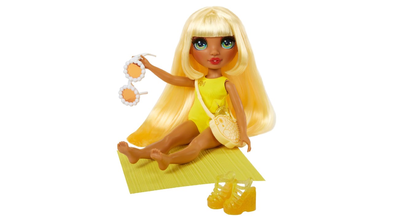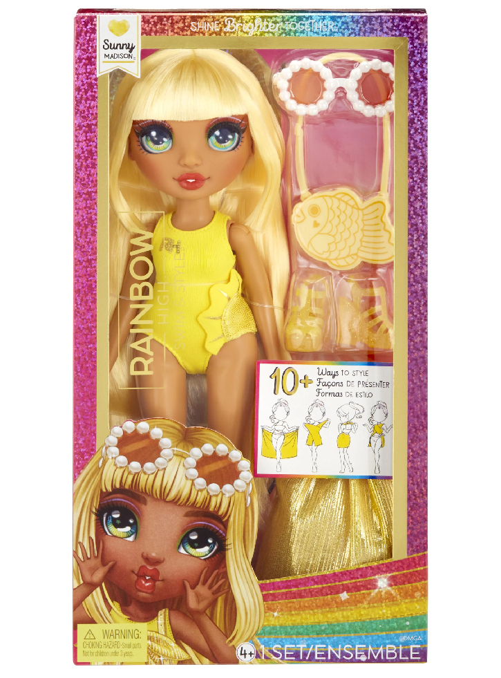 Noua noastră păpușă Rainbow High Swim & Style Sunny Fashion Dolls vine cu o eșarfă adorabilă care poate fi aranjată în peste 10 moduri.