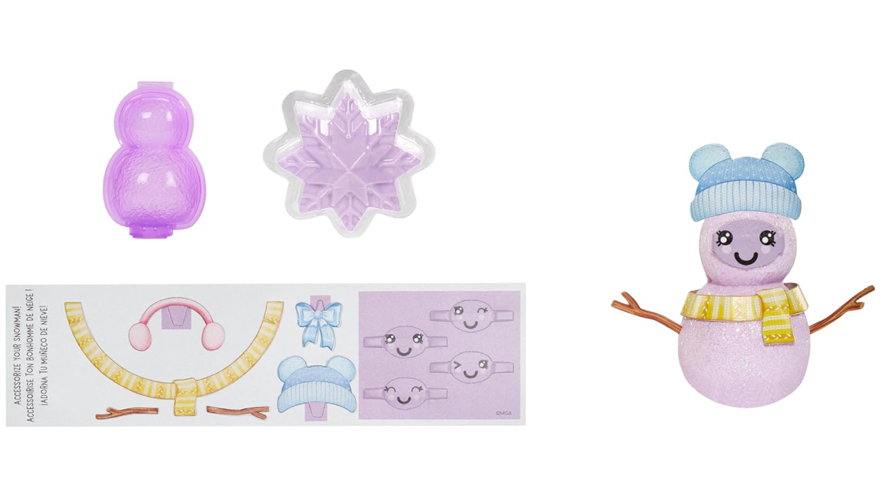 Bonus, fiecare păpușă include, de asemenea, un kit pentru a vă face propriul om de zăpadă cu „zăpadă” modelabilă și accesorii distractive.