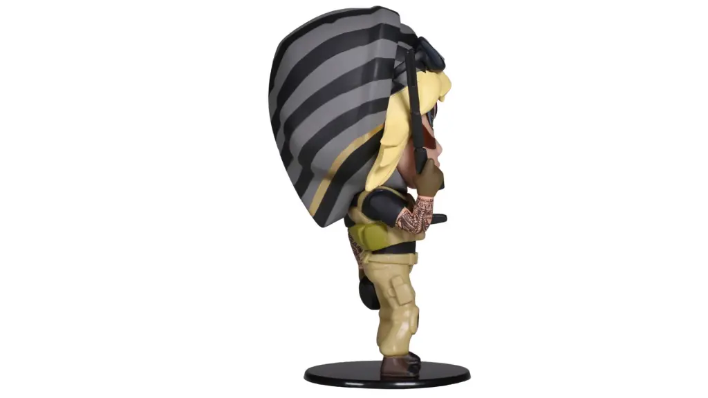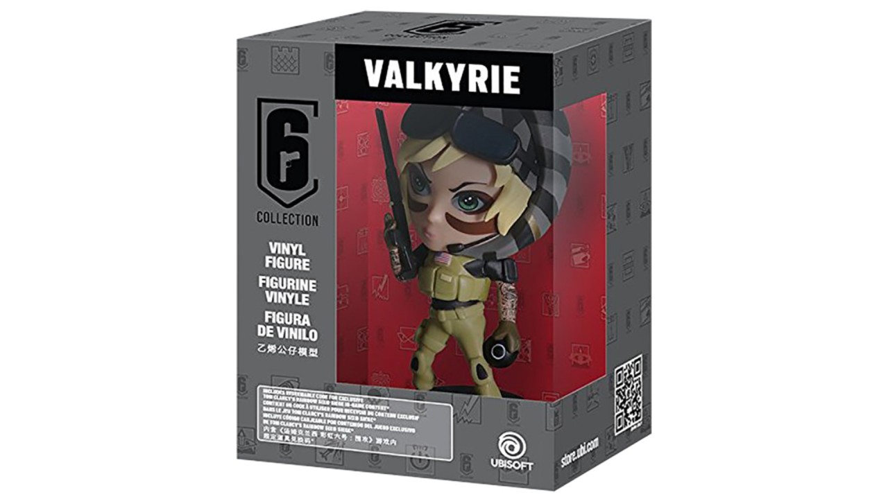 Figurina vine însoțită de un cod unic, care oferă acces la conținut exclusiv în jocul Rainbow Six Siege.