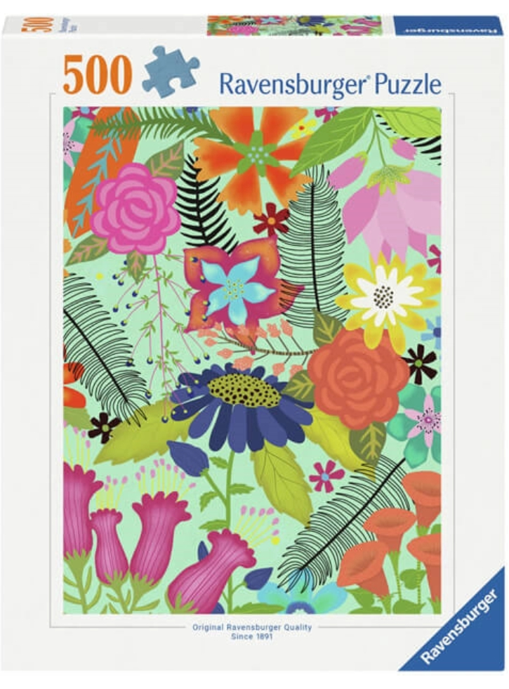 Bucură-te de frumusețea vibrantă a naturii cu acest puzzle jigsaw de 500 de piese care prezintă o gamă uimitoare de flori colorate. F