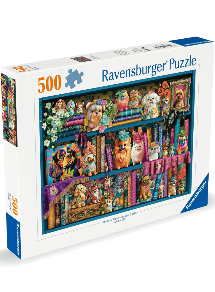 It creates this eclectic dog collection in our puzzle "Precious Porcelain Pups" and feels the stress of the day!