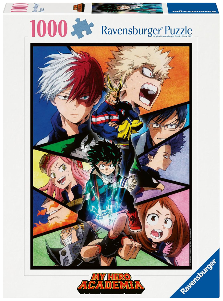 Bucată cu bucată, privește cum puzzle-ul prinde viață cu toate personajele tale preferate, inclusiv Izuku „Deku” Midoriya, Katsuki Bakugo, Shoto Todoroki și multe altele.
