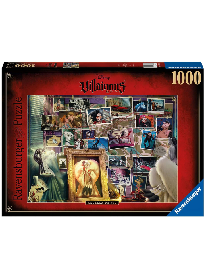 Ravensburger Puzzle Villainous Cruella de Vil 1000p (12001124) este un puzzle captivant dedicat personajului iconic Cruella de Vil din seria Disney's 101 Dalmațieni.