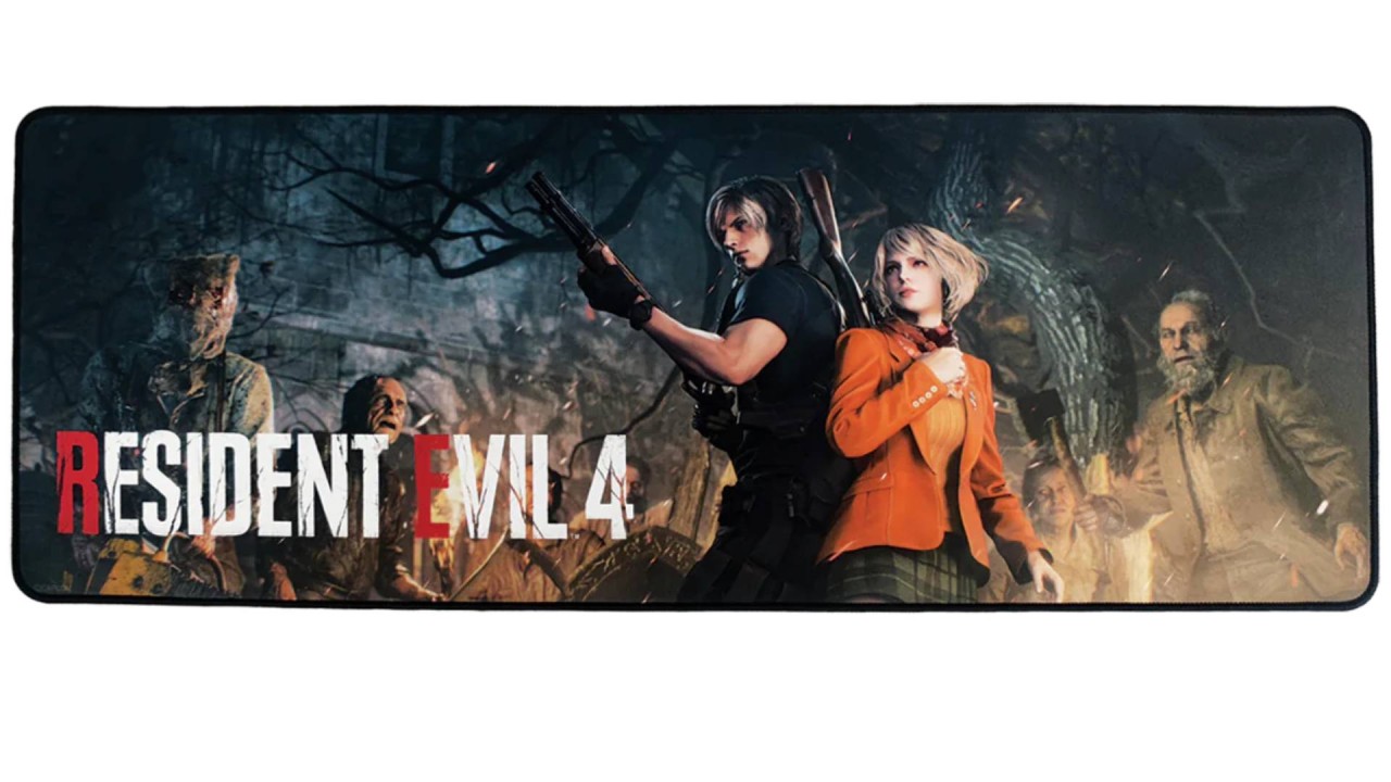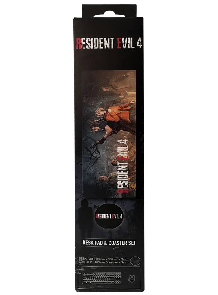 Acest suport de birou o înfățișează pe Ashley Graham răpită și pe salvatorul ei, Leon S. Kennedy, iar suportul de pahare care îl însoțește prezintă logo-ul iconic Resident Evil 4.