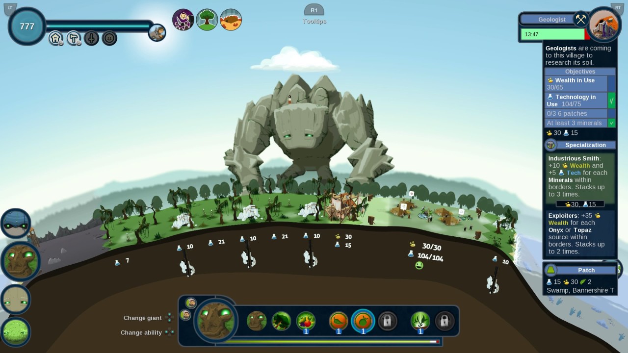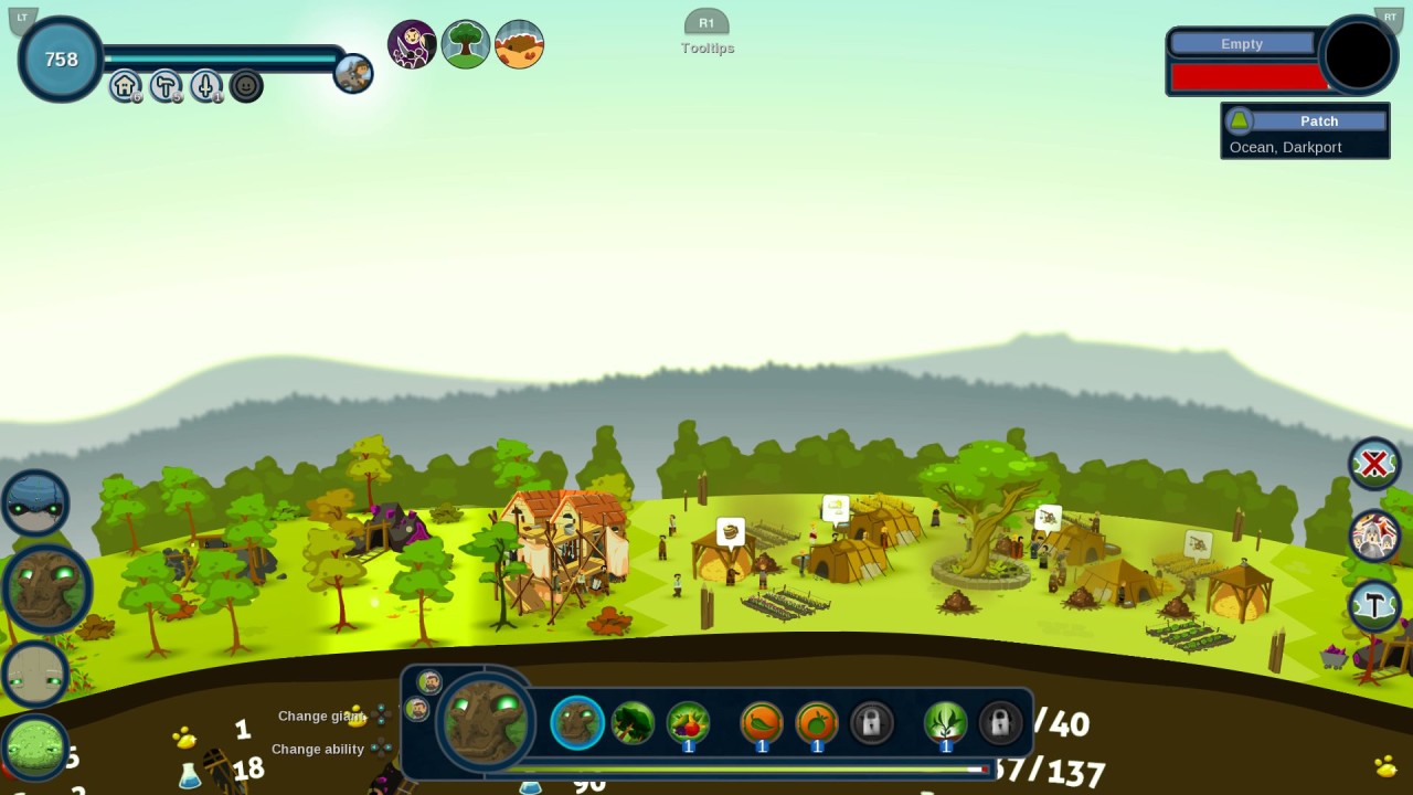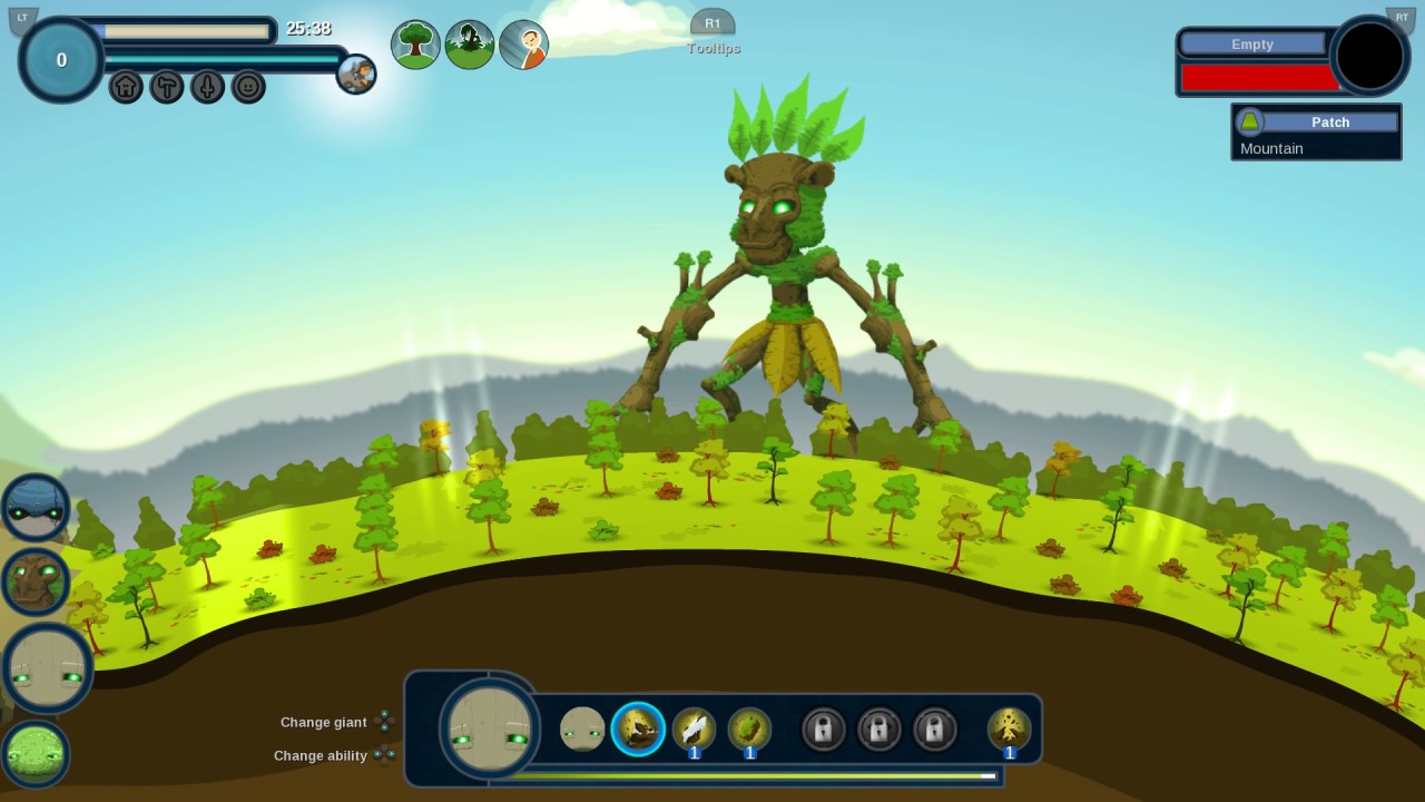 REUS este un joc în care controlezi patru giganți. Fiecare gigant are propriile puteri unice care vă permit să modelați și să evoluați planeta.