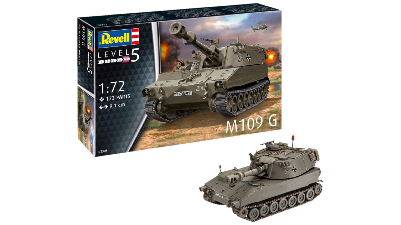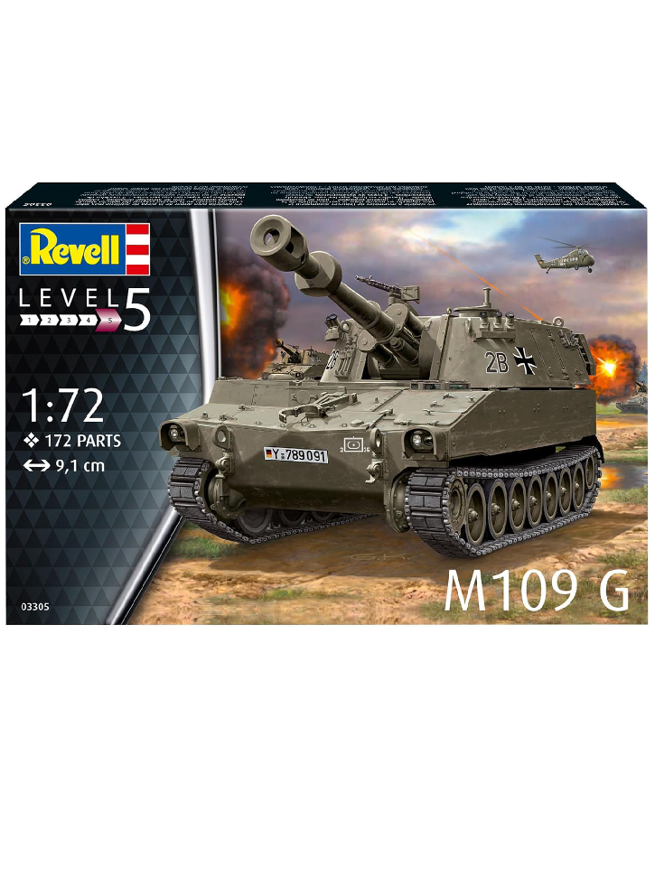 Acest model trebuie asamblat manual continand 172 de piese individuale, la finalizarea asamblarii acesta reprezinta faimosul tank M109-G in splendida lui culoare gri exact ca exemplarele reale folosite in 1963.