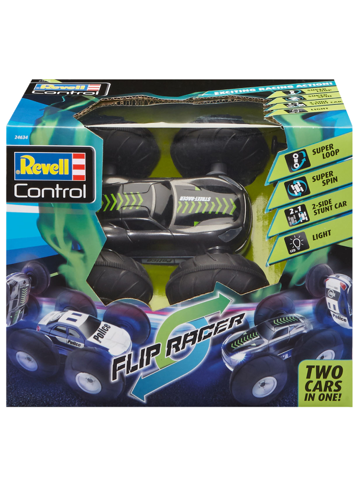 Flip Racer nu este o mașină RC obișnuită. Are o funcție unică cu 2 direcții care îi permite să fie controlată din oricare parte.
