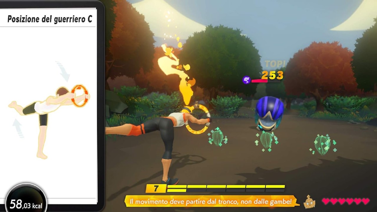 De-a lungul jocului, vei explora diferite niveluri, făcând jogging, făcând presă deasupra umărului și făcând poziții de yoga pentru a progresa în aventură și pentru a-ți menține contorul de sănătate.