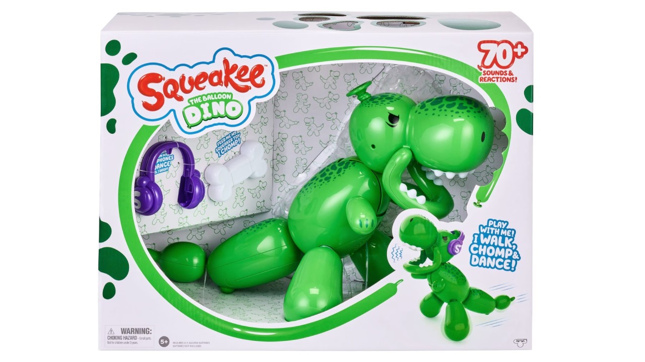 Squeakee DINO de la Moose este o jucărie incredibilă cu multe trucuri în mânecă. Îl veți auzi pe Dino scoțând sunete puternice, însă dacă răcnește prea tare, va fugi sau chiar va pocni. Această funcționalitate interactivă îl face extrem de amuzant și neașteptat.