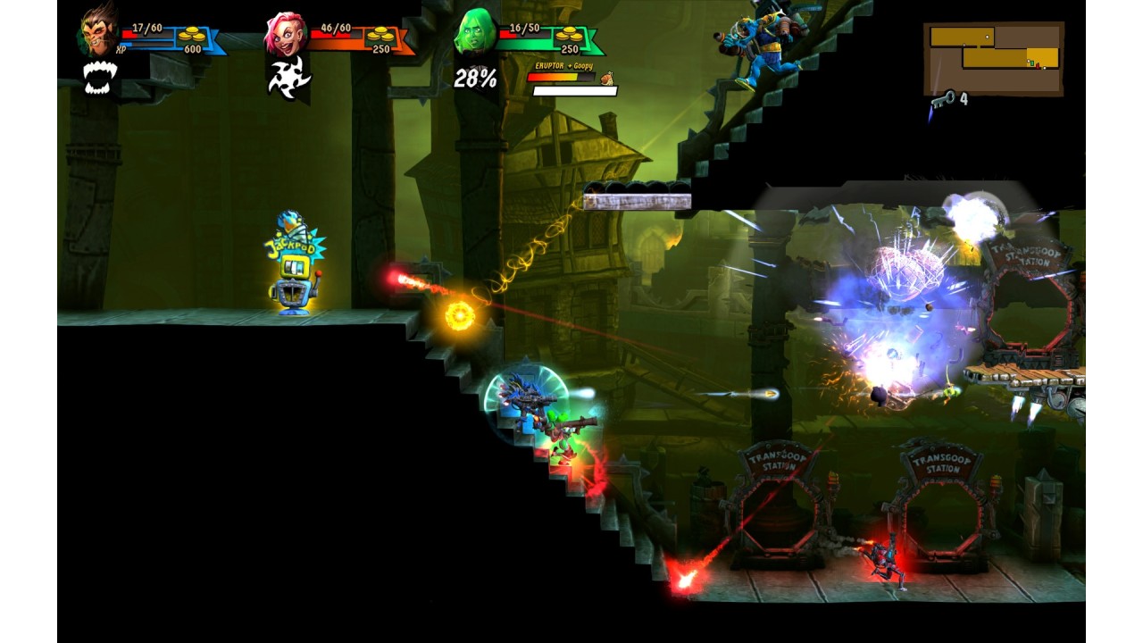 Rogue Stormers combines classic run ‘n’ gun gameplay with a modern art style, twin stick shooter configuration and all the good things rogue like has to offer. Did we mention that you can have up to three friends join you on your rampage in either online or couch co-op mode?